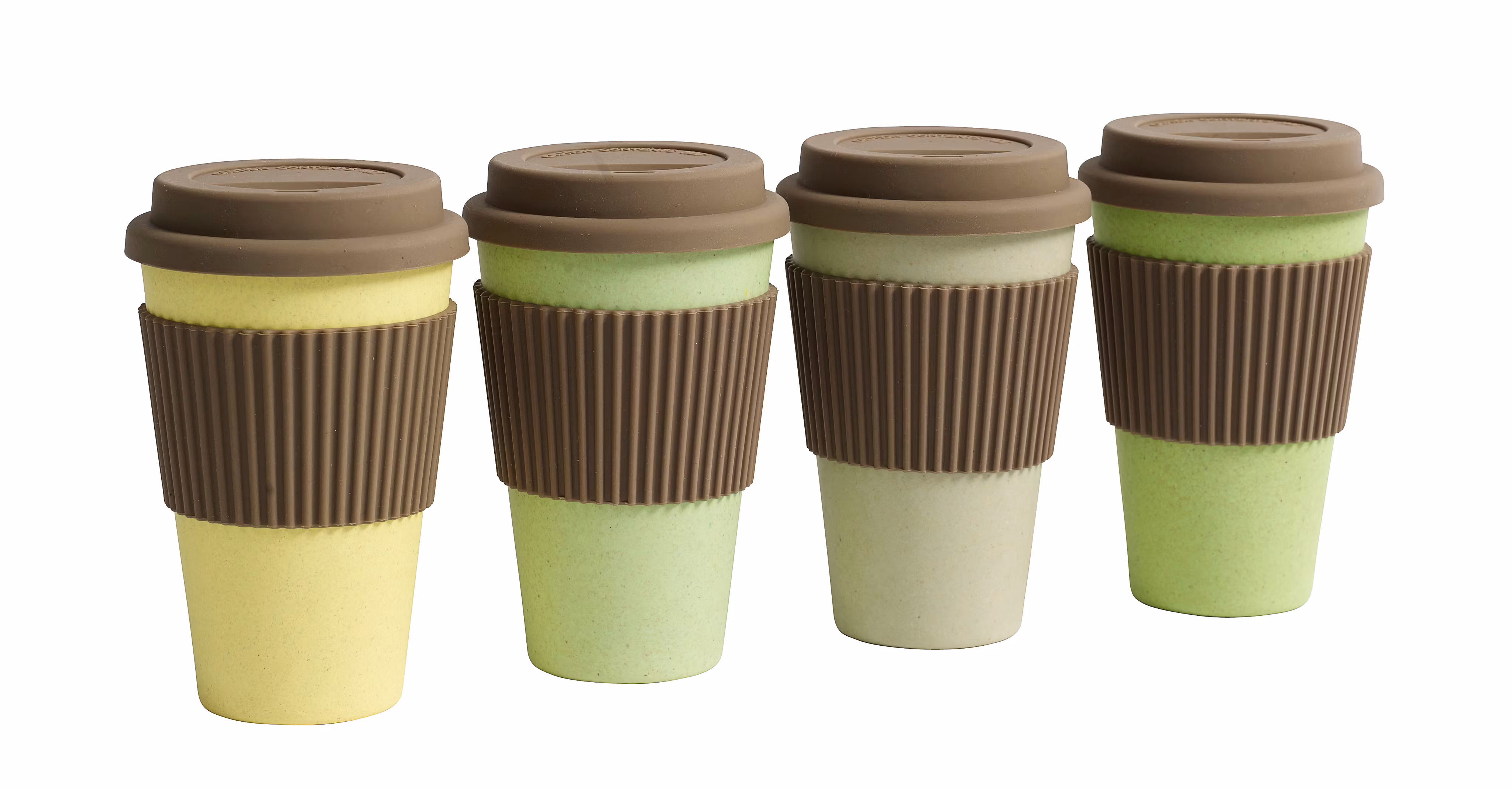 Økologisk take away bambuskopp i grønne & gule nyanser fra NORDAL