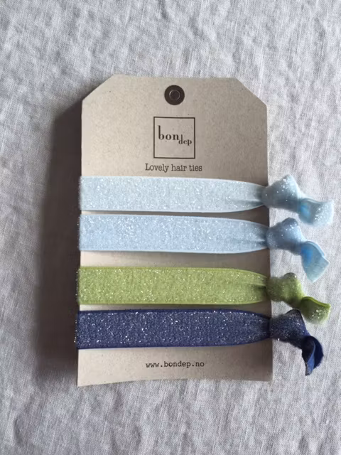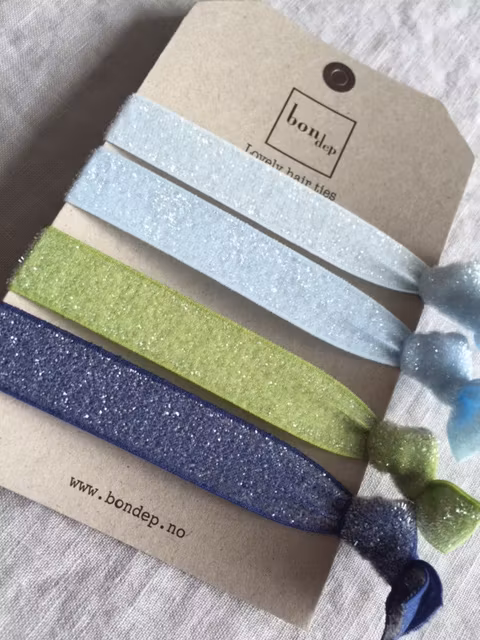 Herlige elastiske hårstrikk / armbånd i ulike nyanser / glitter fra Bond dep.Skånsom for håret! Og like fine å ha som et armbånd. Ta alltid med noen stykke