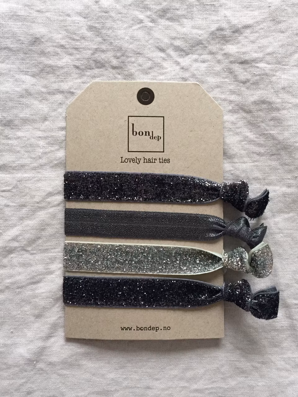 Herlige elastiske hårstrikk / armbånd i ulike nyanser / glitter fra Bond dep.Skånsom for håret! Og like fine å ha som et armbånd. Ta alltid med noen stykke