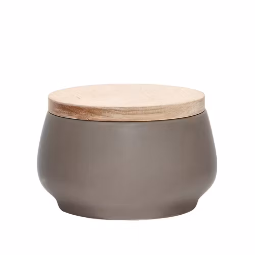 Utrolig vakker stilren grå oppbevaringskrukke fra danske Hübsch.Passer på alle kjøkken! Størrelse: ø13 x h8 cm.Materiale: Keramikk med naturfarget trelokk.