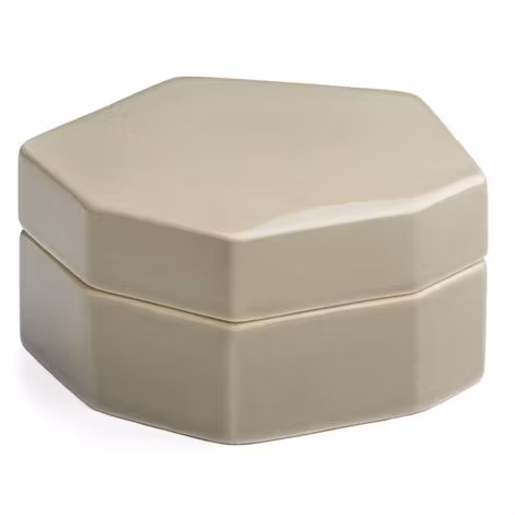 Den dekorativa asken är tillverkad i glaserat stengods och har en trendig hexagonform.