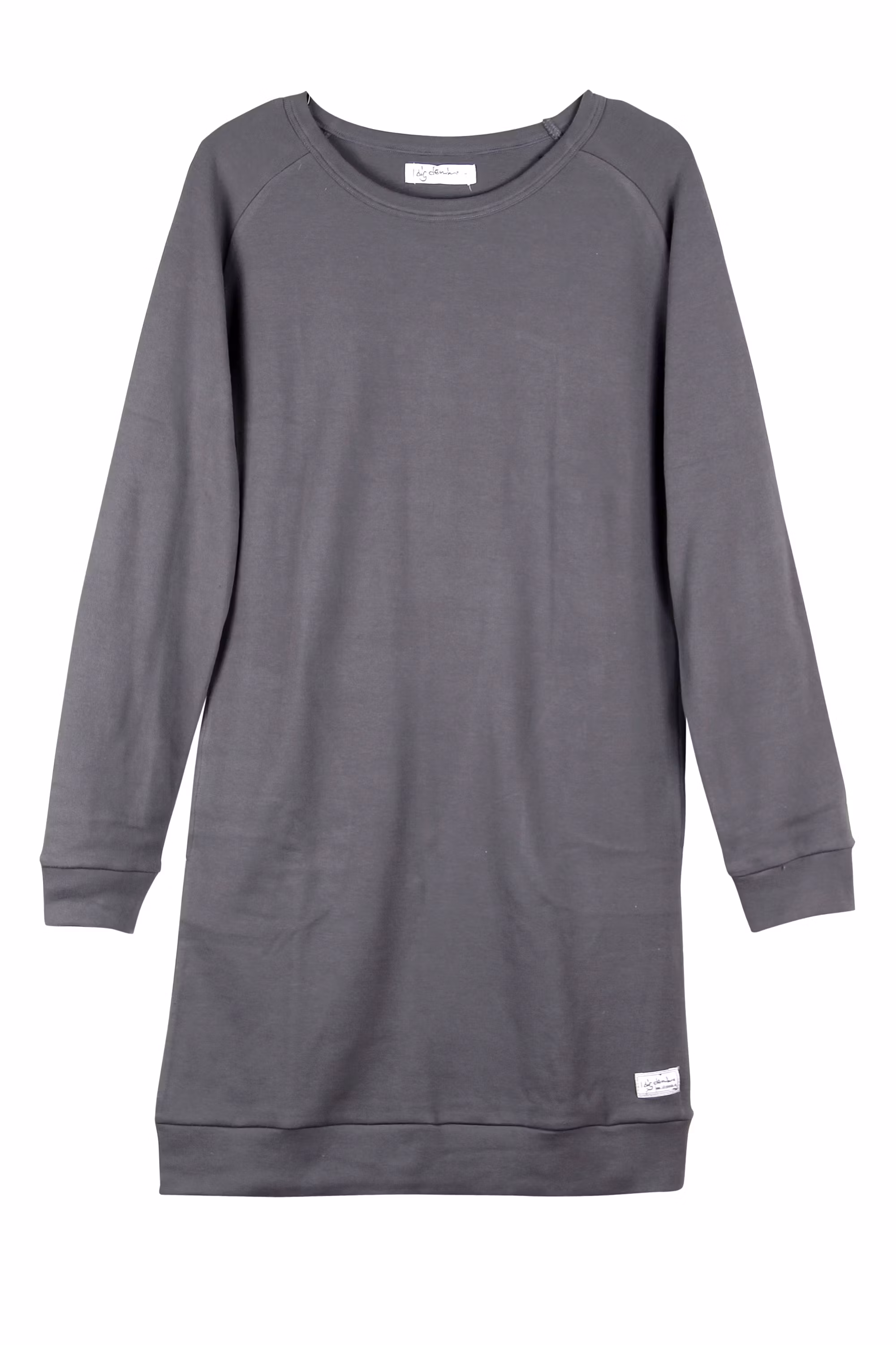 Round neck long-sleeve dress in soft fabric with side pokets and ribbed hem and cuffs.