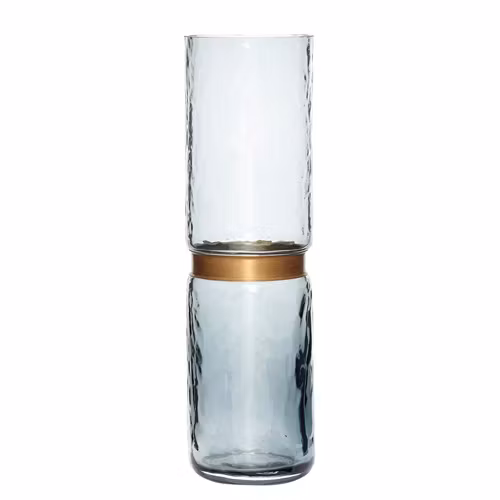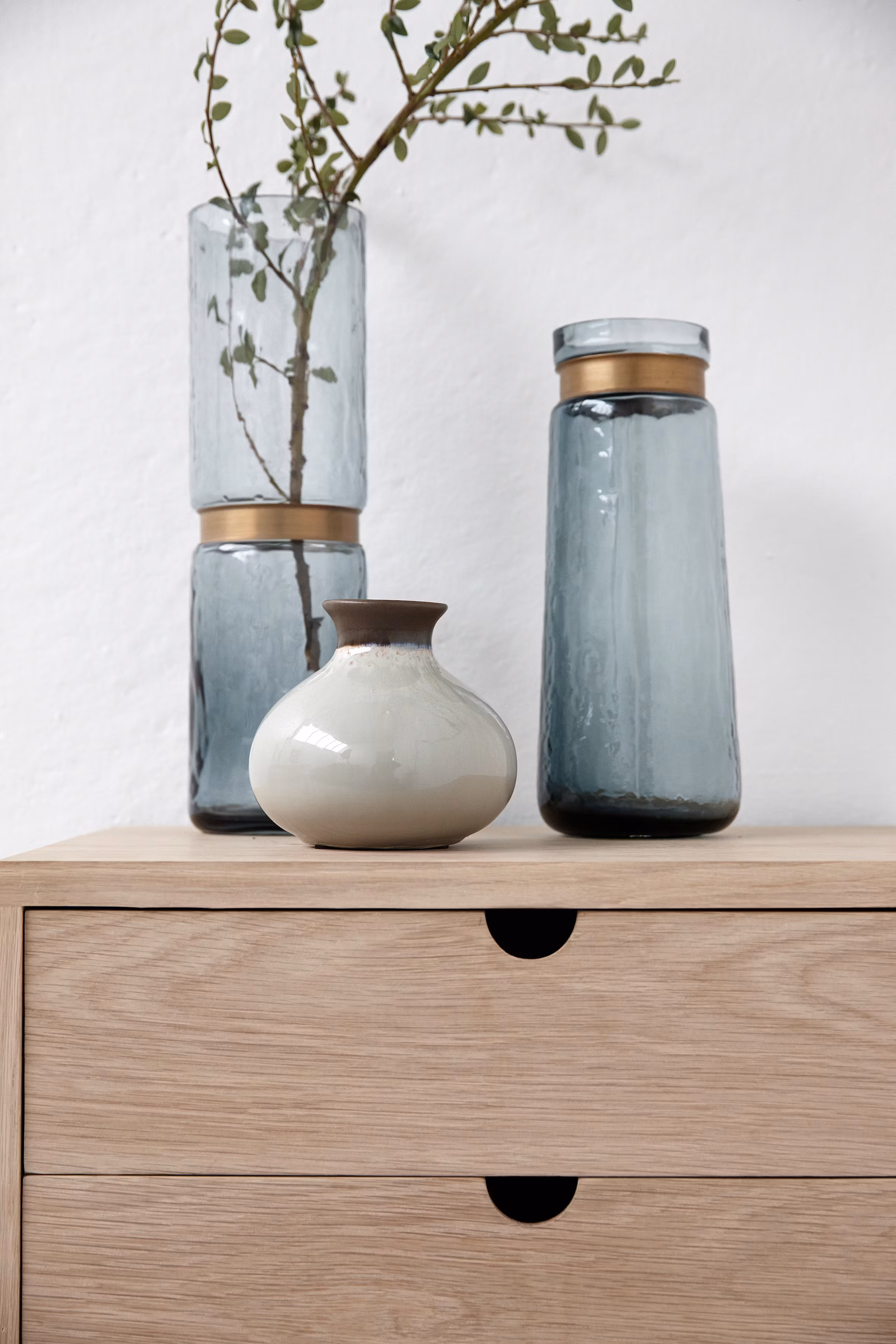 Denne fine stilrene glassvasen med messingring fra danske Hübsch passer utmerket til alle buketter!